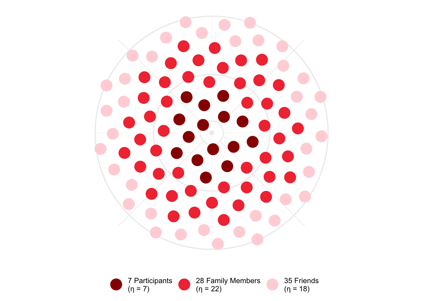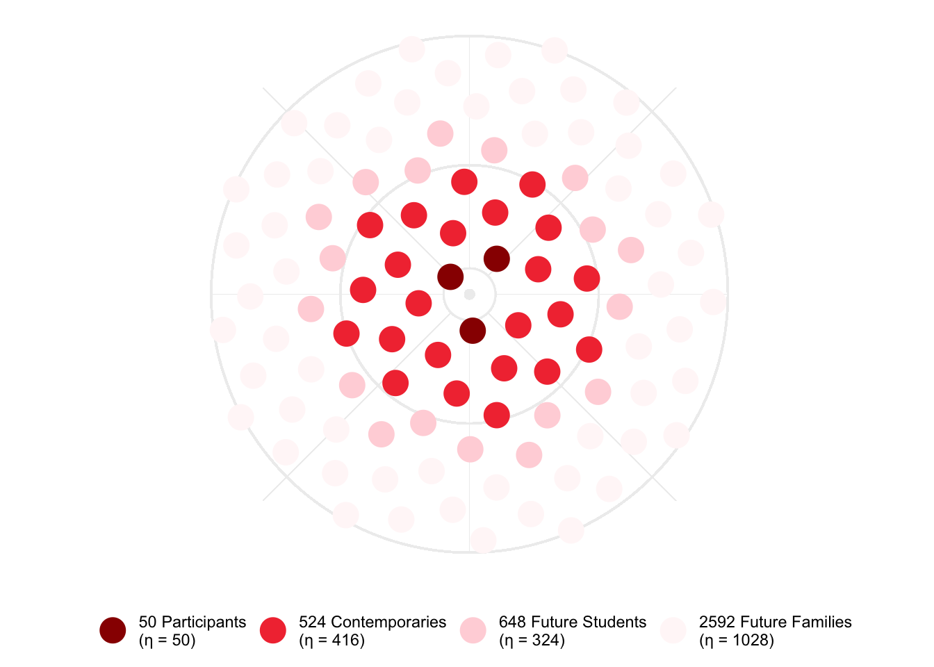 For the purposes of these metrics, we use the number of people potentially impacted as a way to measure these ripple effects over a number of degrees of separation from the participants directly impacted.
